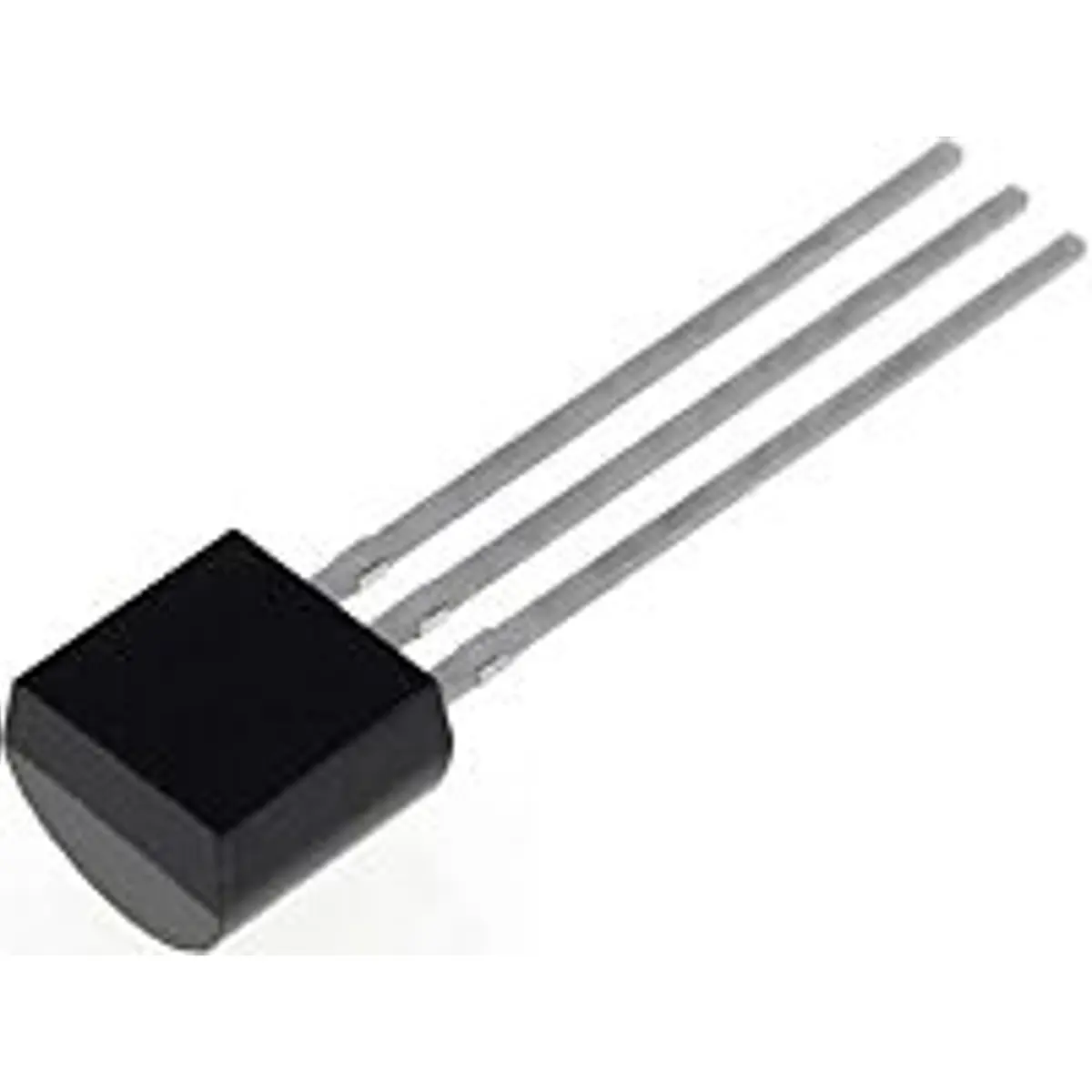 Transístor NPN de uso geral para aplicações de comutação e amplificação de sinais de baixa potência. Oferece tensão máxima coletor-emissor de 50 V e corrente de coletor até 0,1 A, com potência dissipada de 500 mW. O encapsulamento TO92 facilita montagem em placa de circuito impresso com montagem em through-hole (THT). Embalagem a granel para produção. Frequência de transístor de cerca de 300 MHz, adequado para circuitos analógicos e de comutação de alta velocidade, quando projetado com margens de segurança corretas e layout adequado.