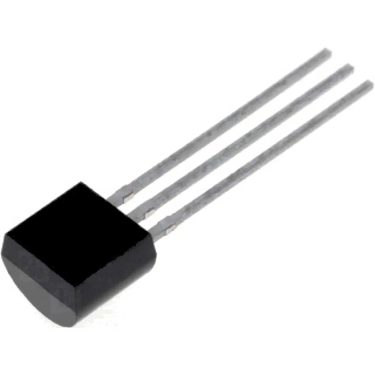 Transistor NPN de uso geral, modelo 2N5551, com tensões Vce até 160V, Vcb 180V e Veb 6V, corrente máxima de 300mA, potência de 0,63W e frequência de funcionamento até 300MHz, suportando temperaturas até 150°C. Ideal para amplificação de sinal e aplicações de comutação RF, oferecendo ganho estável, boa linearidade e fiabilidade em circuitos analógicos e digitais.