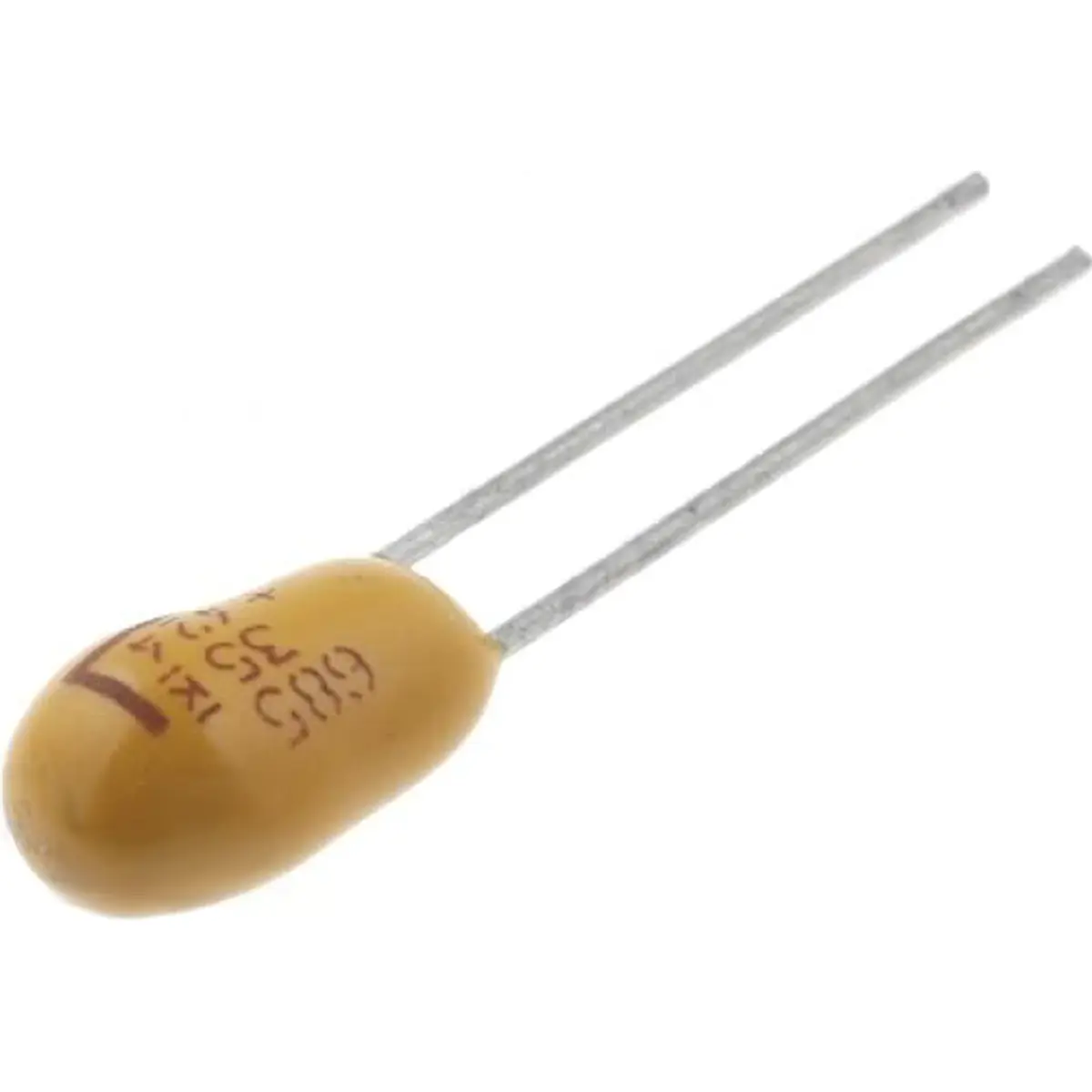 Este condensador de tântalo com montagem THT oferece 6.8µF a 35V com tolerância de ±20% e intervalo de temperatura de funcionamento de -55..85°C. O espaçamento entre pinos é de 2.54mm, o que facilita a montagem em placas de circuito impresso com ligações padrão.