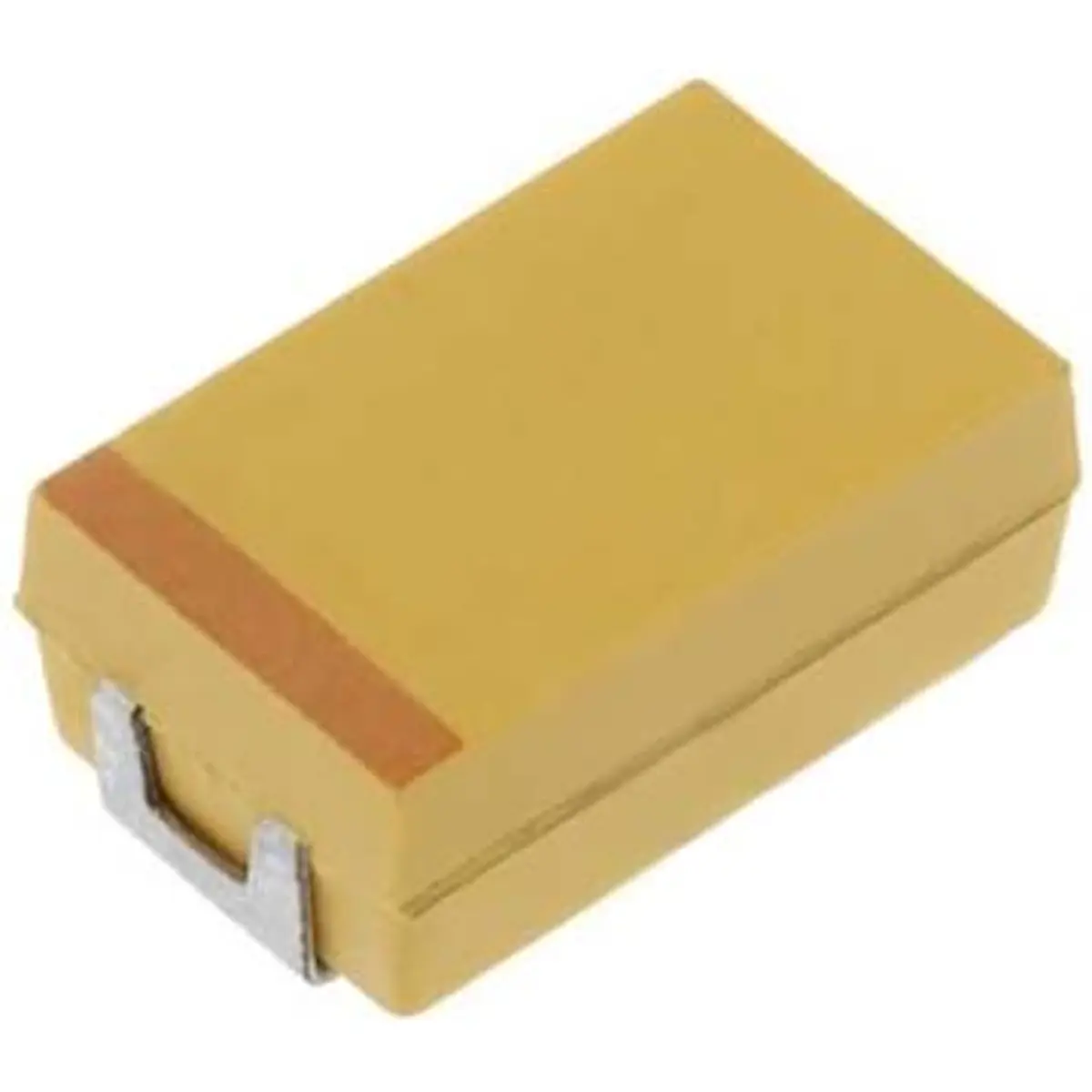 Condensador de tântalo de montagem em superfície (SMD) com capacidade de 470 µF e tensão de funcionamento de 6,3 V, encapsulamento D e tolerância de ±10%. Temperatura de funcionamento entre -55°C e 125°C garante fiabilidade em variações térmicas, tornando-o adequado para circuitos que exigem componentes pequenos e estáveis.