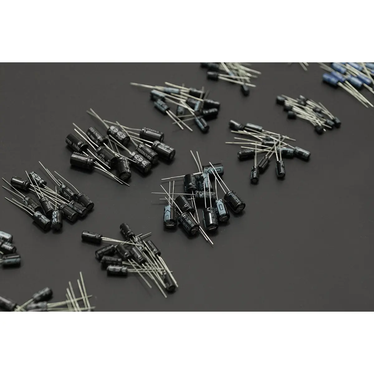 Este é um conjunto de condensadores de desacoplamento eletrolíticos de alumínio. Vem com 12 tipos diferentes de condensadores com várias capacitâncias e voltagens.