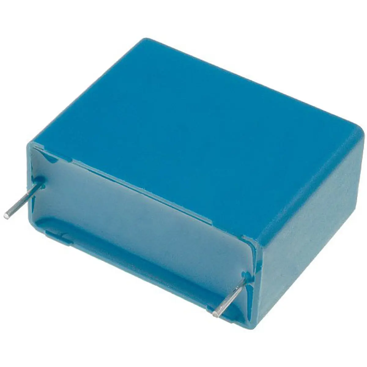Condensador de supressão de polipropileno classe X2 com 1.5uF e 305VAC, tolerância ±20%, distância entre terminais de 27.5mm, comprimento de terminais 6mm e dimensões de 12.5x21.5x31.5mm, para aplicações elétricas exigentes, conforme IEC 60068-1 40/105/56.