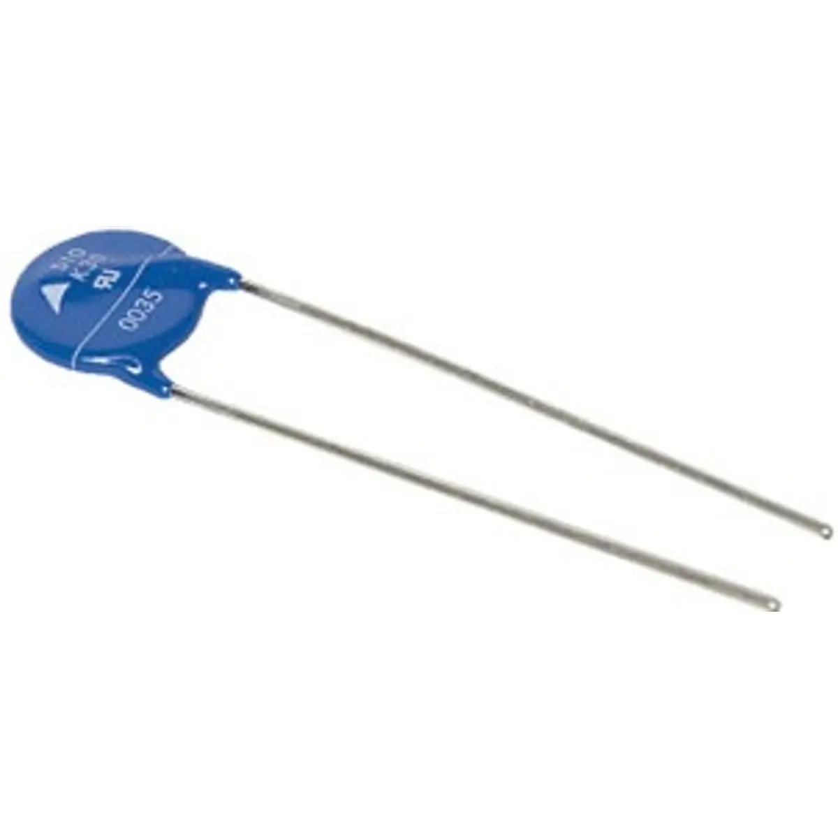 Dispositivo MOV de proteção contra sobretensões, com tensão RMS de 275 VAC e tensão máxima de 350 VDC. Corpo de Ø16,5 mm, Imax de 4,5 KA (8/20 µs) e Wmax de 71 J. Espaçamento entre terminais de 7,5 mm e terminais Ø0,8 x 30 mm. Ideal para proteção de circuitos contra picos de tensão em fontes de alimentação e dispositivos sensíveis.