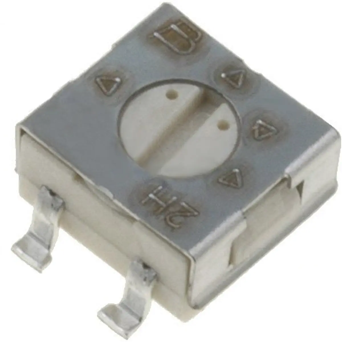 Potenciômetro de ajuste de 50kΩ com montagem SMD horizontal e potência de 250 mW. Destinado a montagens de superfície, oferece resistência estável com tolerância de ±20% e faixa de temperatura de funcionamento entre -55°C e 125°C. Possui rotação mecânica de 240°, distância entre pinos de 2.3x5mm e dimensões de 4.5x4.5x2.55mm, tornando-o adequado para placas de circuito impresso compactas.