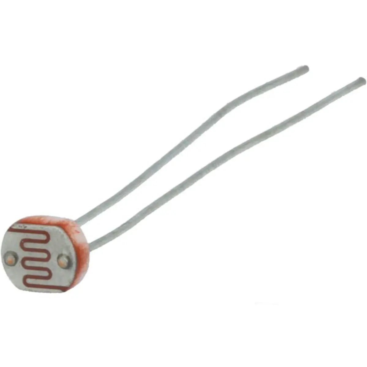 Foto-resistência LDR com resistência entre 16..50kOhm a 10lx, sensibilidade máxima em 560nm, montagem em THT, alimentação de 150VDC e diâmetro de 5mm. Ideal para detetar luminosidade, sensores fotocondutores e ajustes de circuitos de iluminação e automação, em aplicações de controlo de luz.