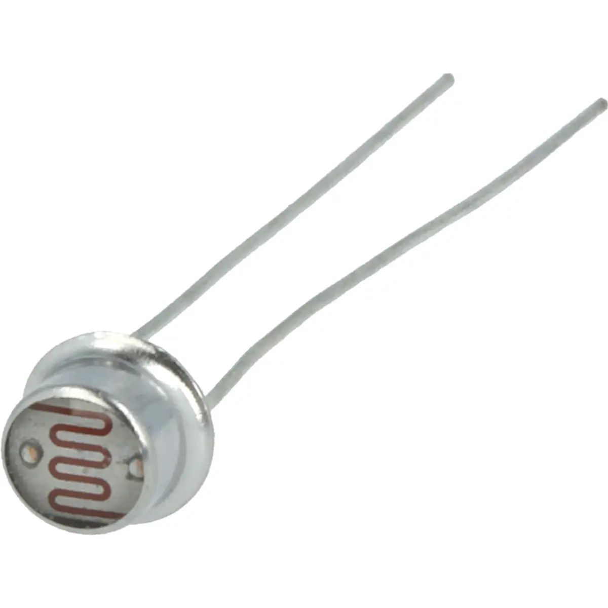Sensor foto-resistivo (LDR) com sensibilidade a 540 nm e resistência entre 16 kΩ e 50 kΩ a 10 lx. Possui montagem THT, potência de 100 mW e diâmetro de 5,5 mm, suportando até 150 VDC. Ideal para detecção de luz ambiente, controlo de iluminação e aplicações de sensores analógicos em electrónica.