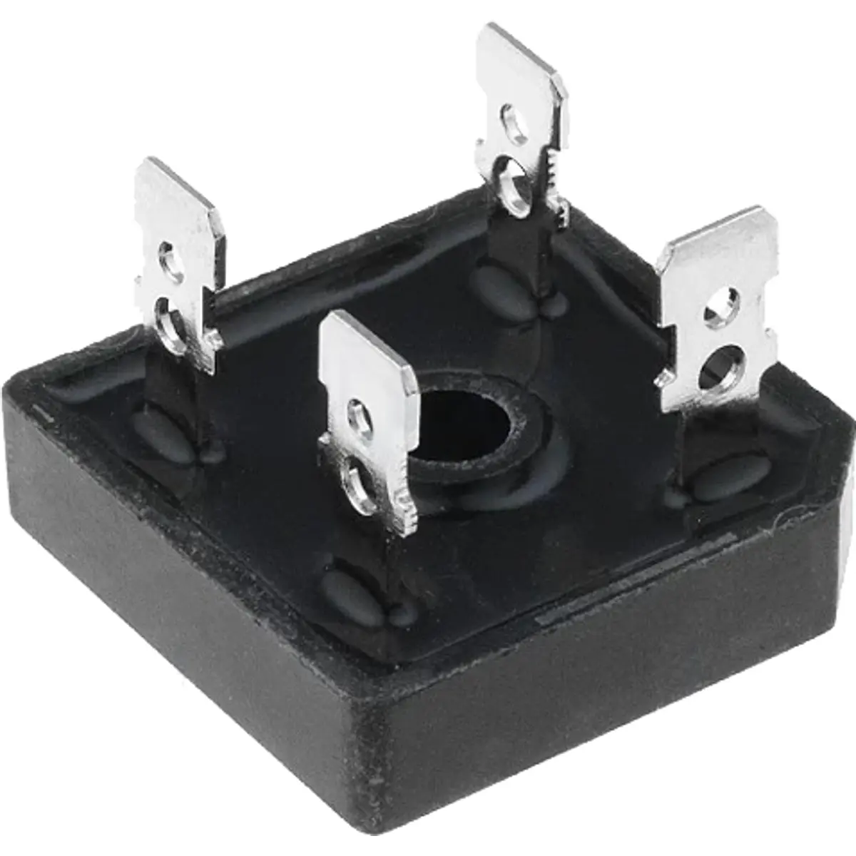Ponte retificadora monofásica com tensão inversa até 1kV e corrente de condução de 25A. Suporta picos de até 400A e apresenta carcaça BR, montagem THT e saídas FASTON para ligações rápidas. Ideal para aplicações de potência moderada em painéis elétricos, proporcionando montagem estável, fiabilidade em ambientes industriais e facilidade de integração com conectores padronizados. Compatível com várias configurações de montagem e cablagem, facilitando a substituição de componentes e o projeto de fontes de alimentação.