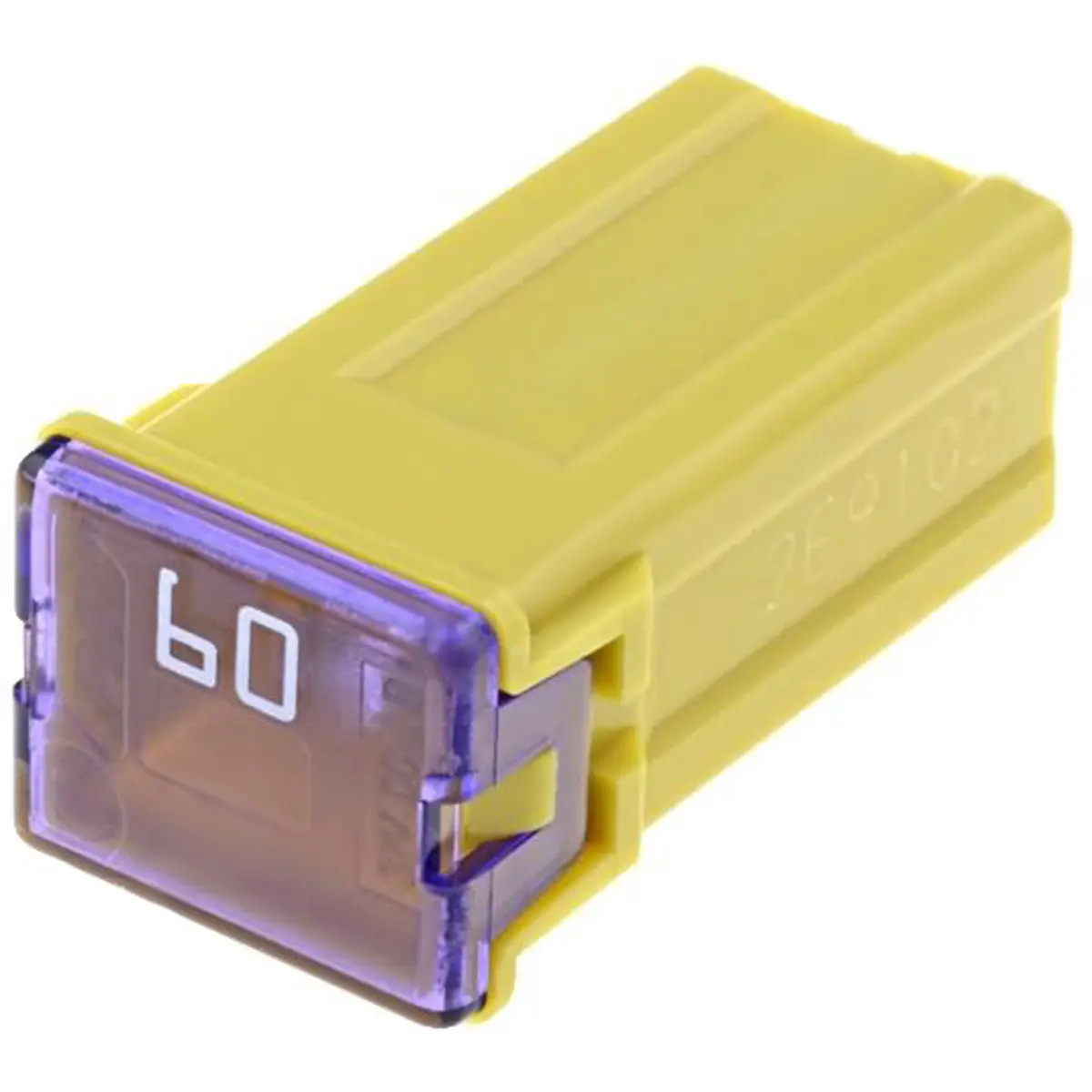 Fusível automotivo de baixa tensão com corrente nominal de 60A e tensão máxima de 32V, de cor amarela. Ideal para proteção de circuitos elétricos em veículos, interrompendo rapidamente a corrente em caso de sobrecarga. Compatível com caixas de fusíveis automotivos e painéis elétricos, facilita a substituição e a manutenção. Modelo MF14 da linha JAPVAL, compatível com sistemas de proteção elétrica de automóveis.