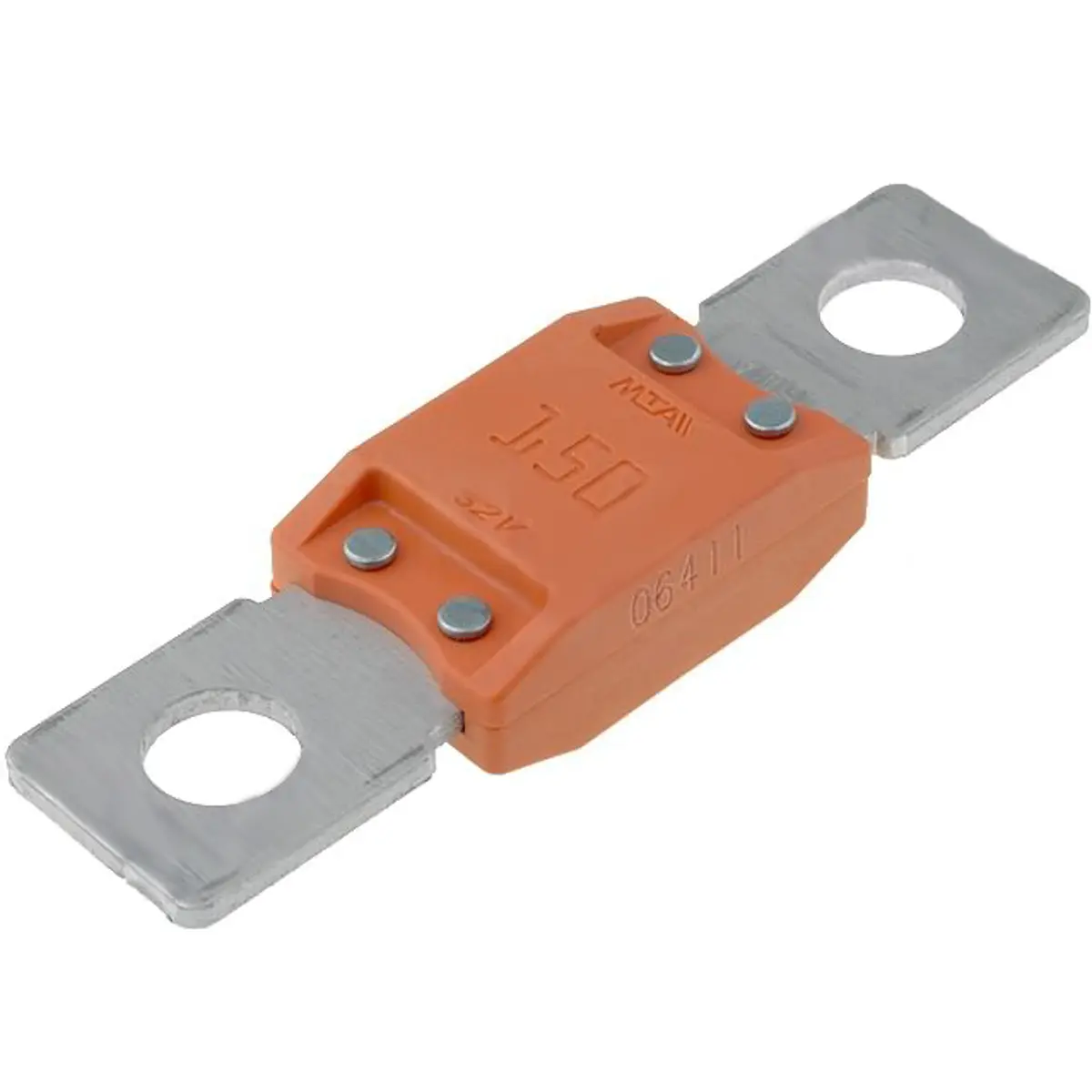 Fusível automotivo de baixa tensão com tensão nominal de 32 V e corrente nominal de 150 A. Possui comprimento de 68,6 mm e cor laranja, destinado a aplicações automotivas em sistemas elétricos de veículos.