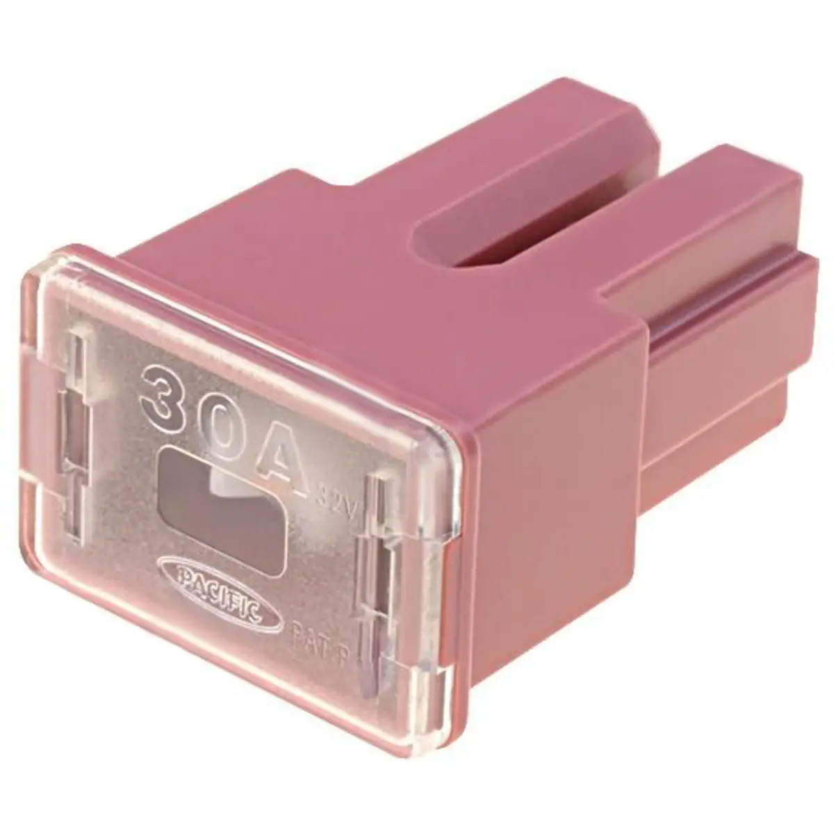 Fusível automotivo de baixa tensão, com corrente nominal de 30A e tensão máxima de 32V. Destinado a circuitos elétricos automotivos.