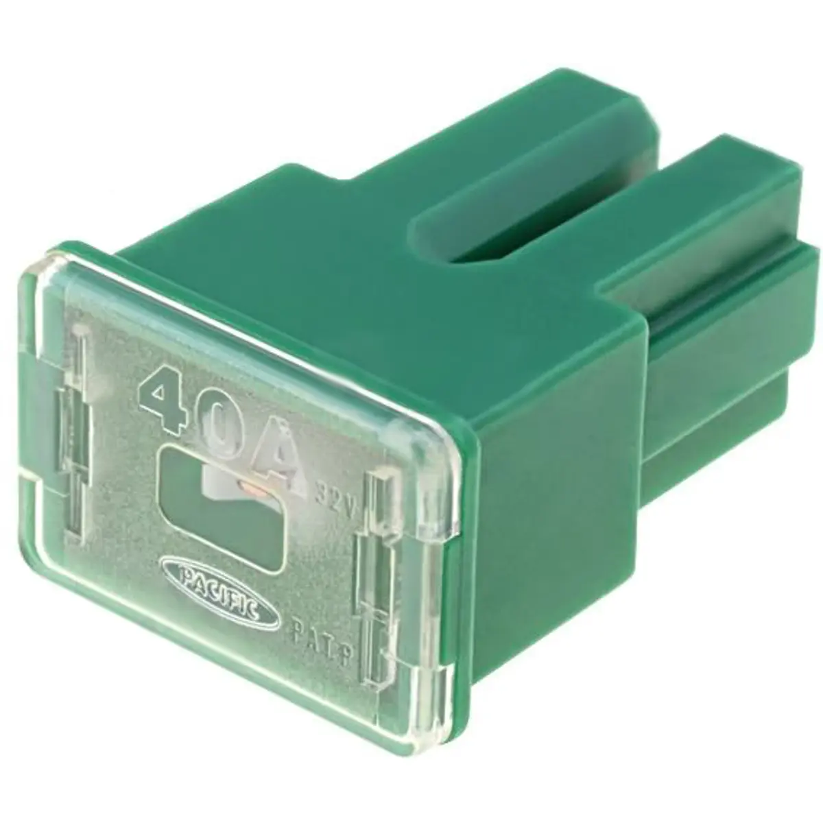 Fusível automotivo de baixa tensão com corrente nominal de 40 A e tensão máxima de 32 V, indicado para proteção de circuitos elétricos em veículos. Interrompe o circuito automaticamente quando a corrente excede o valor nominal, prevenindo sobreaquecimento e danos. Ideal para instalações elétricas automotivas, facilita a substituição e a manutenção de sistemas elétricos, mantendo fiabilidade e segurança.