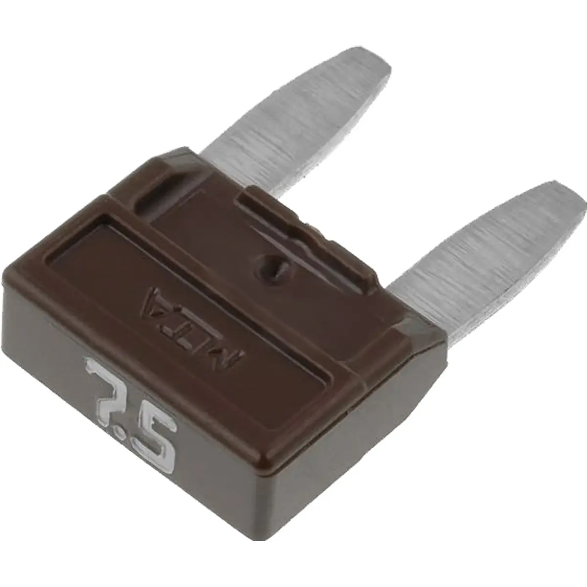 Fusível automotivo de baixa tensão com cor castanha, corrente nominal de 7.5 A e tensão nominal de 32 VDC. Tamanho compacto de 11.9 mm, adequado para circuitos automotivos. Proporciona proteção eficaz contra sobrecarga e curto-circuito em sistemas de baixa tensão, com substituição simples e compatibilidade com fusíveis de baixa tensão.