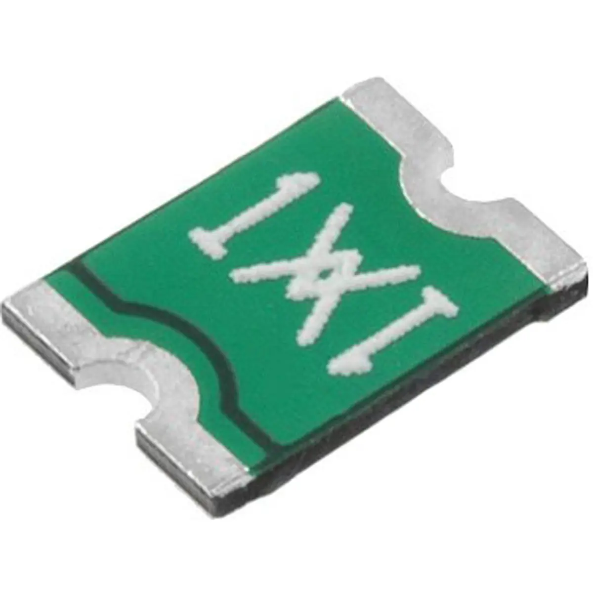 Fusível de polímero do tipo PTC para proteção contra sobrecorrente em circuitos de baixa tensão. Possui corrente nominal de 1,1 A e capacidade de corrente alternada de 2,2 A, tensão máxima de 8 V e potência de 1,2 W. A resistência situa-se entre 40 mΩ e 210 mΩ, oferecendo resposta rápida a picos de corrente. Opera numa faixa de temperatura de -40°C a 85°C. Possui dimensões compactas de 4,73 x 3,41 x 0,62 mm, adequado para montagem em PCB e aplicações de proteção elétrica.