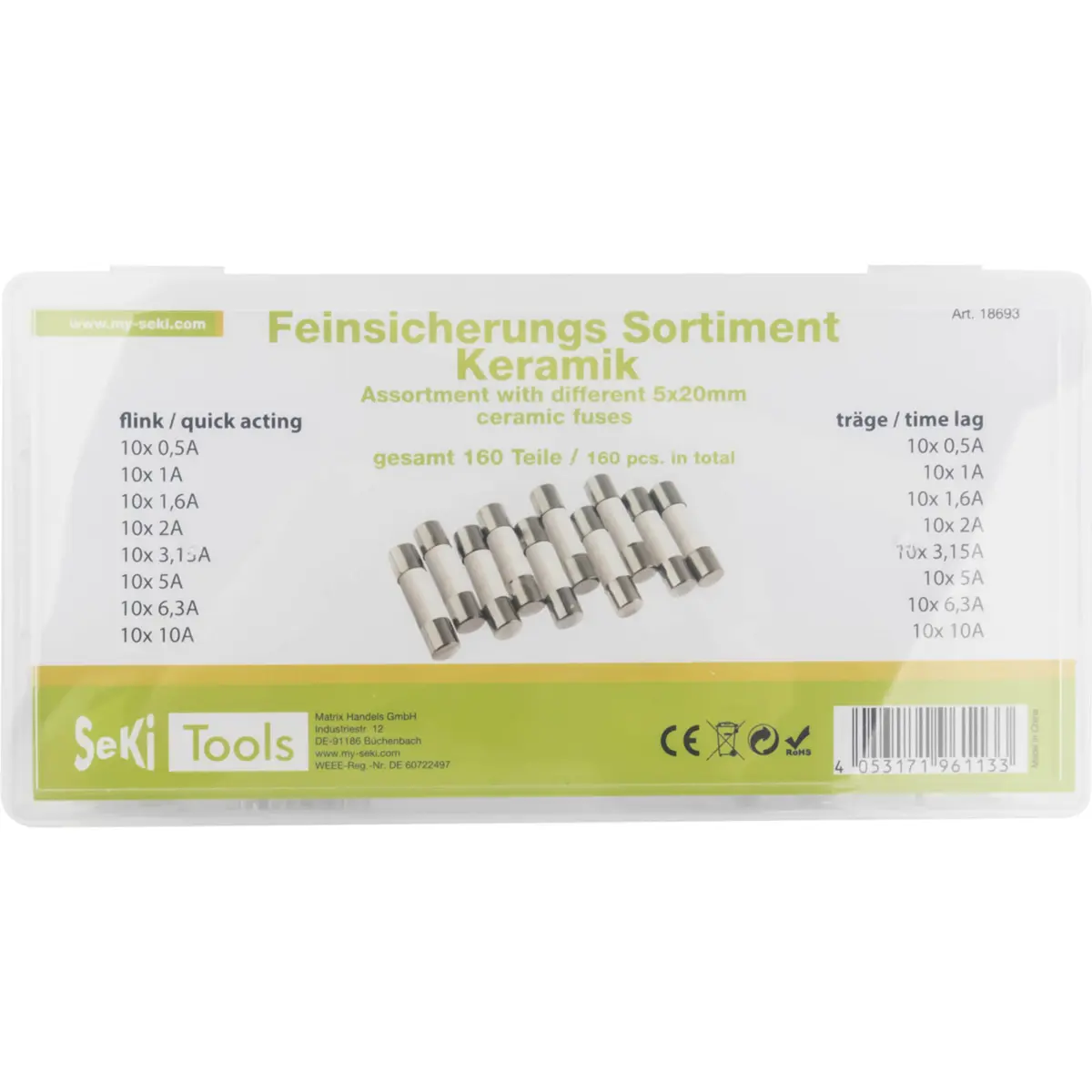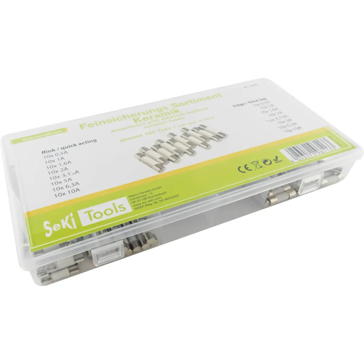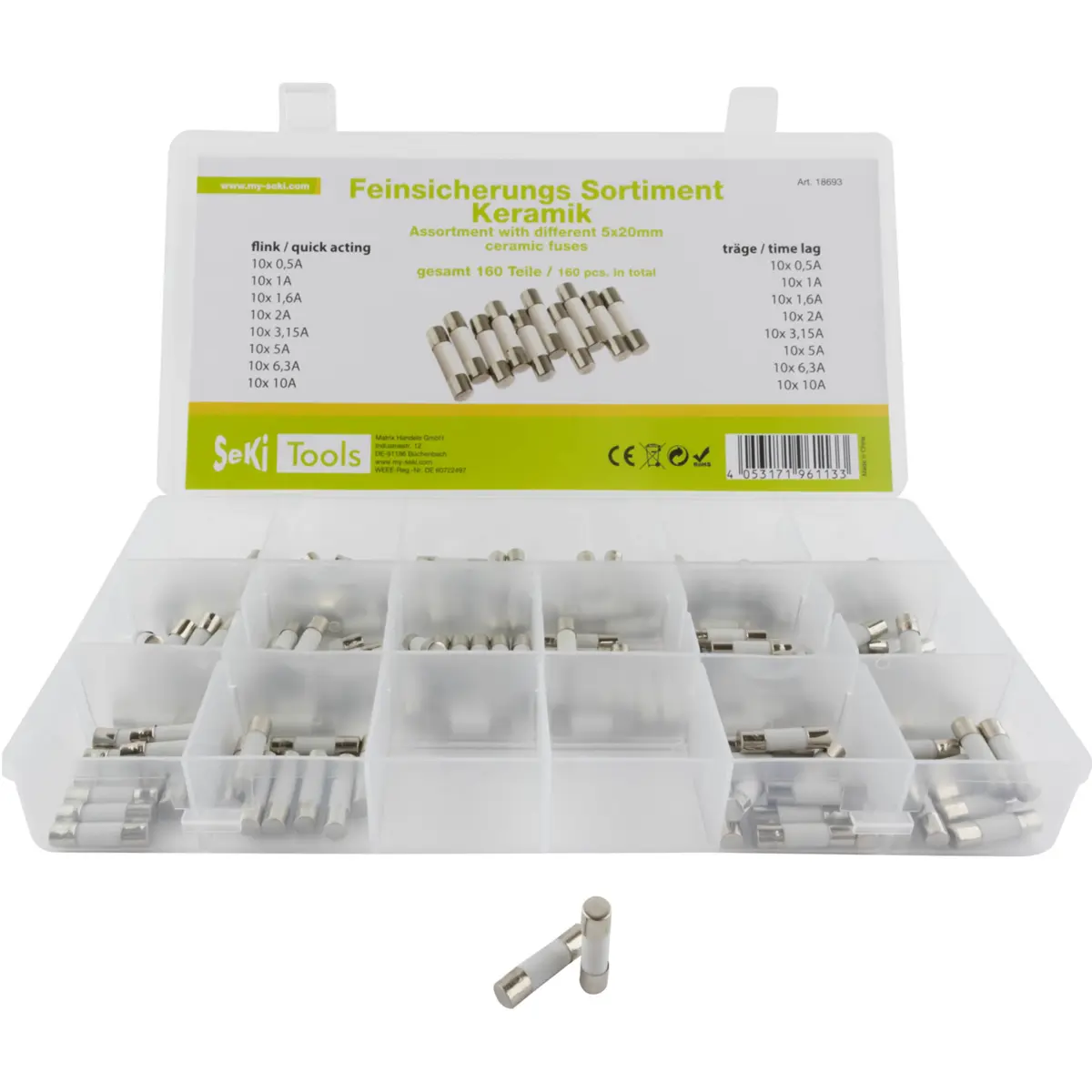 Sortido de 160 fusíveis cerâmicos 5x20mm