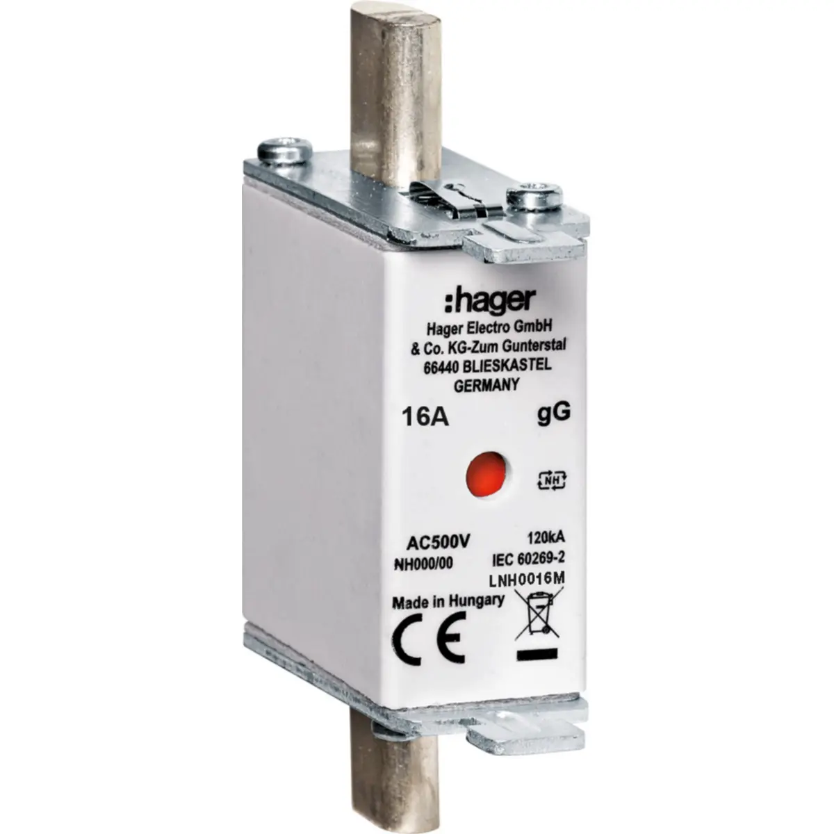 Hager LNH0016M - Fusível de facas NH000 16A gG 500V