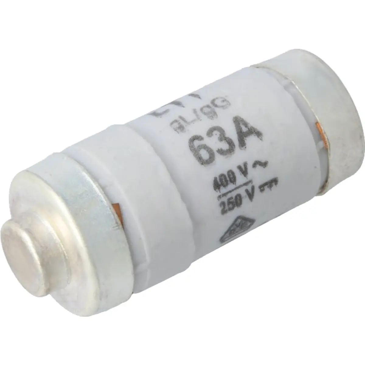 Fusível industrial D02, gG/gL, 400V AC, com corrente nominal de 63A. Destina-se à proteção de circuitos elétricos em instalações industriais, assegurando interrupção segura de sobrecargas e recuperação rápida após substituição. Compatível com tensões até 400V AC, oferece fiabilidade e durabilidade em ambientes industriais de baixa tensão.