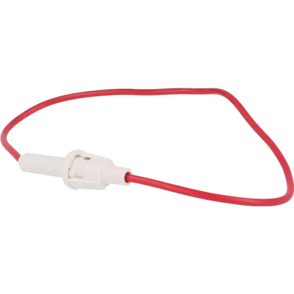 Porta-fusível para fusíveis cilíndricos Ø5x20mm com fios, cabo de 285 mm, tensão nominal 250 V AC e corrente máxima 5 A. Montagem com fio, saídas em fios. Carcaça de polipropileno, contacto de latão com revestimento estanhado. Cabo 20 AWG, cor vermelha. Adequado para uso em quadros elétricos onde se exige proteção de circuito com fusíveis cilíndricos.