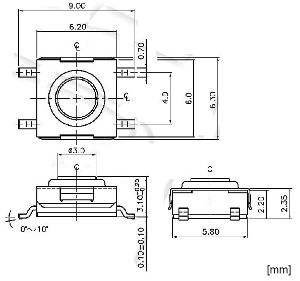 Ninigi TACTM-63N - Botão 6.2x6x(3.1)mm SPST-NO 12VDC 50mA SMD