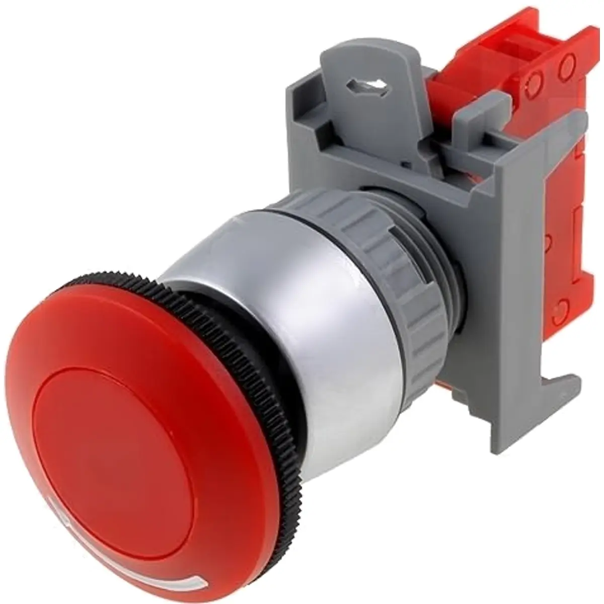 Botão de emergência biestável com retorno por rotação e contacto normalmente fechado (NC), de cor vermelha, indicado para painéis de controlo. As suas dimensões de 50x30x38 mm permitem montagem simples em quadros elétricos, oferecendo acionamento rápido e seguro em situações de emergência. Ideal para ambientes industriais, garantindo sinalização clara de estado e resistência mecânica suficiente para uso repetido. Compatível com sistemas de controlo que exigem interrupção confiável de circuitos sem referência a marcas.