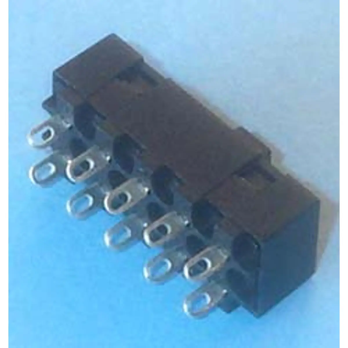 Interruptor deslizante bipolar de 10 pinos comutação em 4 posições estáveis, tamanho compacto de 38x14mm. Ideal para aplicações eletrónicas em placas de circuito impresso, permitindo a seleção de estados com fiabilidade e precisão sem referir marca ou o nome do produto. Compatível com várias ligações, facilita a integração em projetos onde é necessária uma condução estável entre estados.