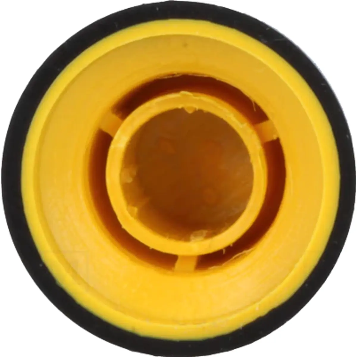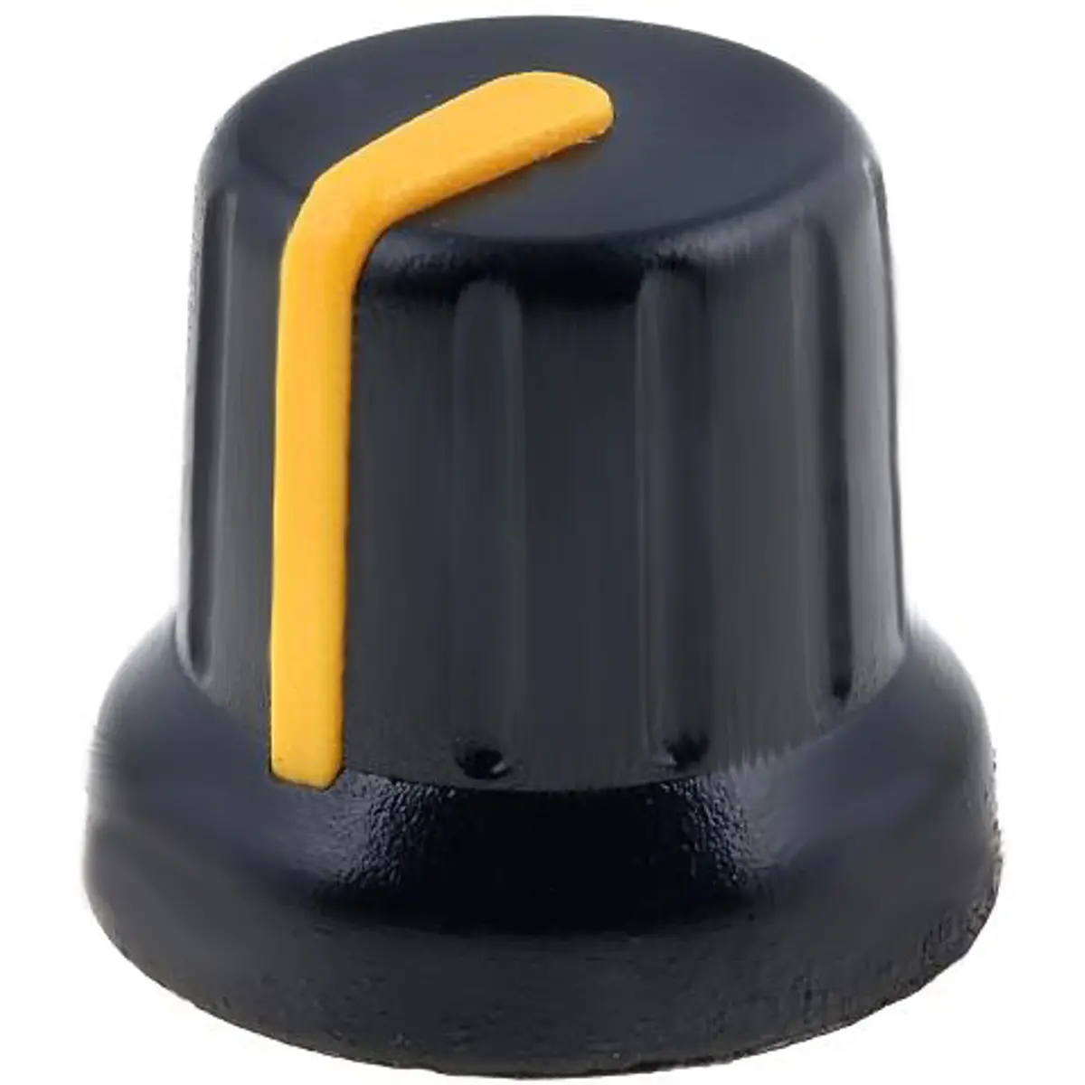 Botão de encaixe para potenciómetro [veio serrilhado] c/ indicador amarelo Ø16x14mm - preto