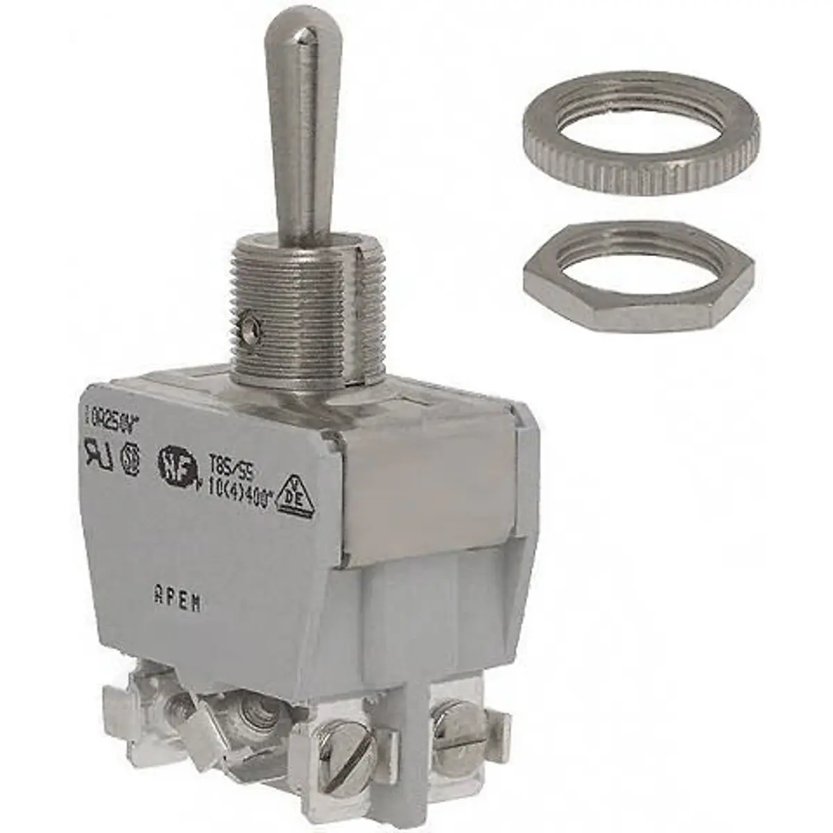 Apem - Interruptor de alavanca 1 posição estável - (ON)-OFF-(ON) - 250VAC 10A (6 pinos)