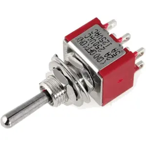 IC Switches IC4201T1B1M1QE - Interruptor de alavanca miniatura 3 posições estáveis - ON-OFF-ON - 125VAC 5A (12 pinos) - vermelho