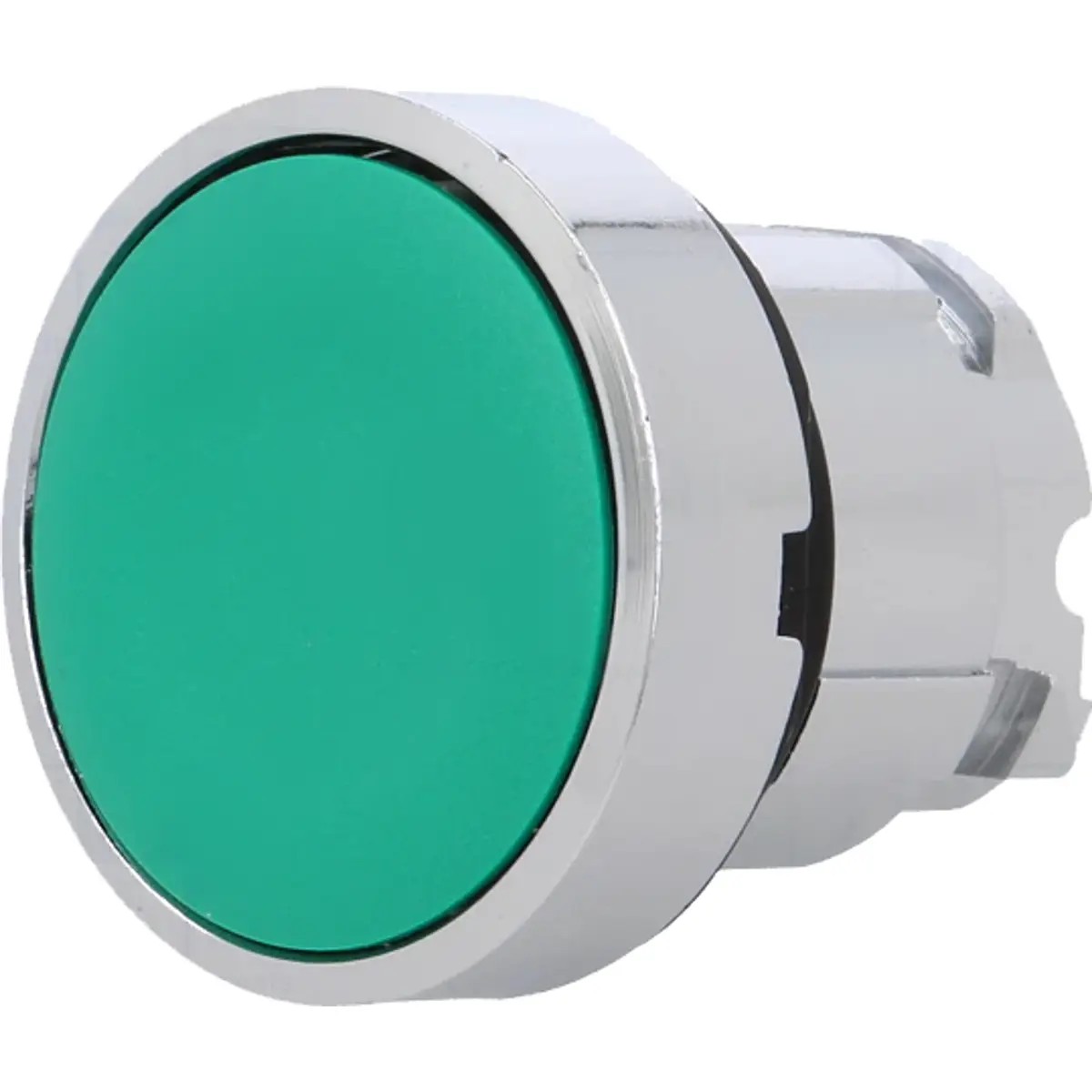 Esta cabeça de botão não iluminada, de formato redondo, com atuador verde e retorno por mola, é compatível com recortes Ø22mm. A moldura metálica cromada proporciona resistência a choques e vibrações, com proteção IP66 para uso industrial em ambientes exigentes. Opera entre -40°C e 70°C, facilitando a instalação em máquinas existentes sem comprometer a durabilidade ou segurança.