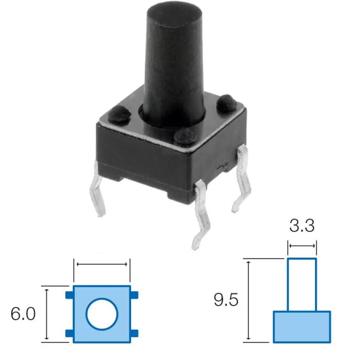 - Altura do botão (medido desde a PCB): 9.5mm