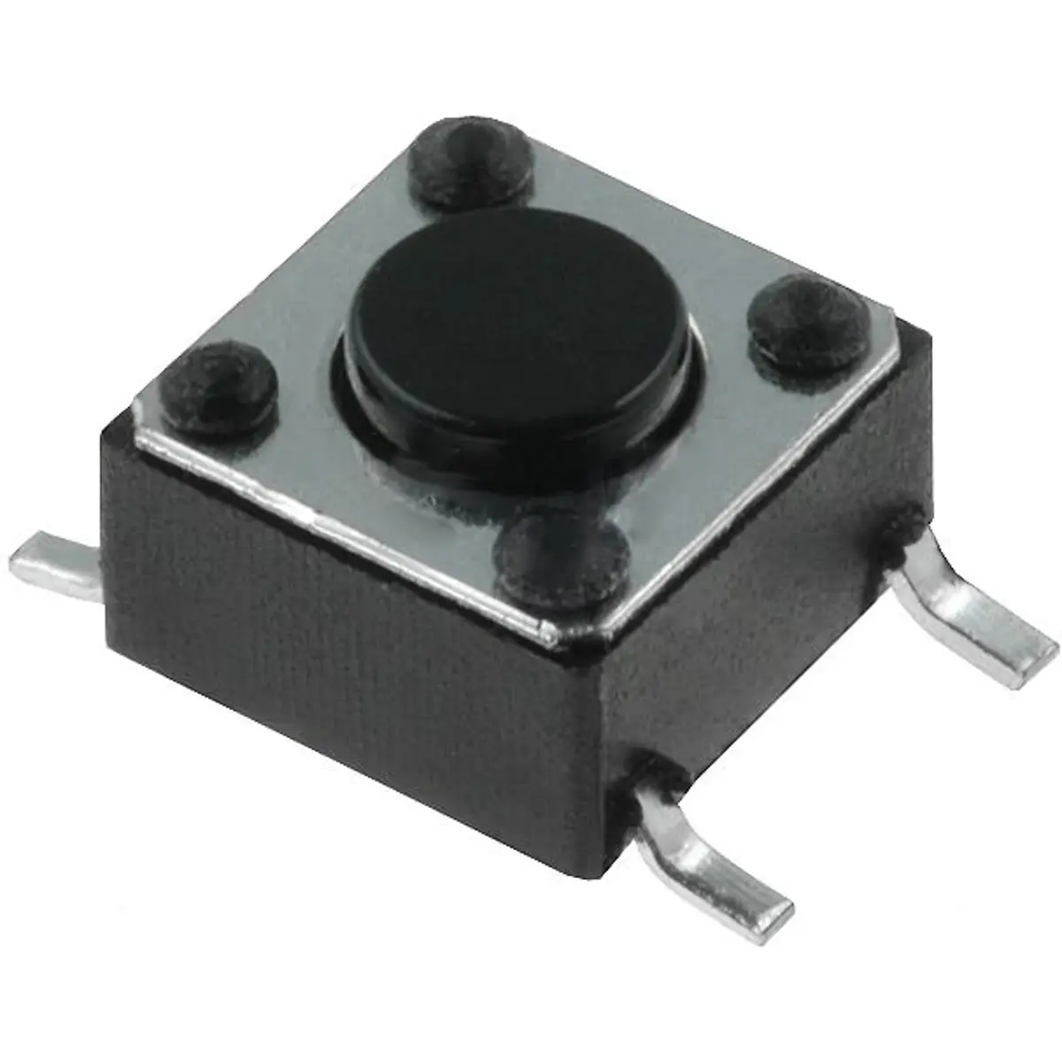 Microinterruptor TACT SPST-NO com montagem SMT, ideal para circuitos eletrónicos compactos. Confiável, com capacidade de carga 0,05 A a 12 V DC, potência de ligação 1,6N e comutação OFF-ON. Dimensões da carcaça 6x6 mm, altura de 4,3 mm, saídas para soldar, raster 4,5x9 mm. Faixa de temperatura de funcionamento -30 °C a 85 °C e durabilidade de 100000 ciclos. Compatível com solda a 240 °C em 2 s.