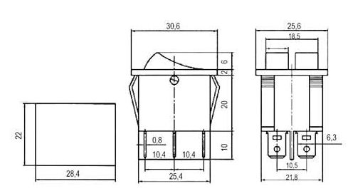 Interruptor basculante duplo ON-OFF 230VAC 16A - com LED vermelho - KCD6