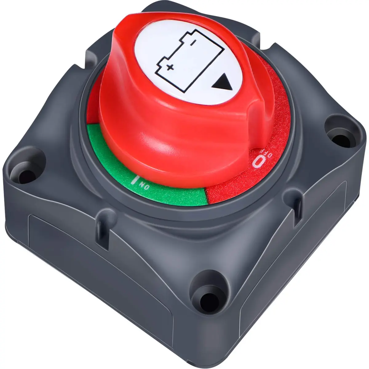 Corta-Corrente de bateria de duas posições, em plástico ABS durável, utilizado para a comutação segura de circuitos DC com uma tensão de 12-48V. Sua isolação cerâmica permite que o desconector seja usado mesmo sob carga com uma corrente de pico de 1000A e corrente nominal de 200A. É muito adequado como um desconector de segurança para sistemas de bateria em instalações fotovoltaicas menores, autocaravanas, camiões, barcos, caravanas, etc.