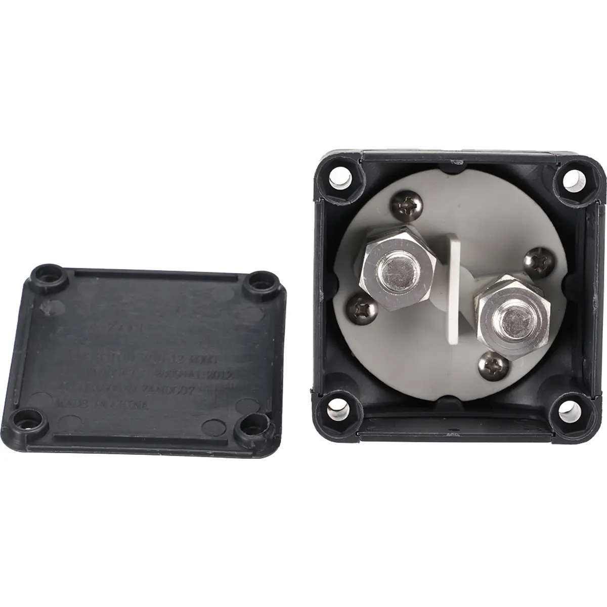 O corta-corrente de bateria de duas posições oferece comutação segura de circuitos DC para tensões entre 12 e 48 V. Com caixa de plástico ABS autoextinguível e isolação cerâmica, suporta picos de corrente até 1000 A e correntes nominais de até 200 A, com cargas de curto prazo de 455 A e longo prazo de 275 A. Contatos em latão estanhado, dois fios de 10 mm com porca, classificação IP20 para uso interior, e dimensões de 69 x 69 x 75 mm com posição ON/OFF para controlo simples.