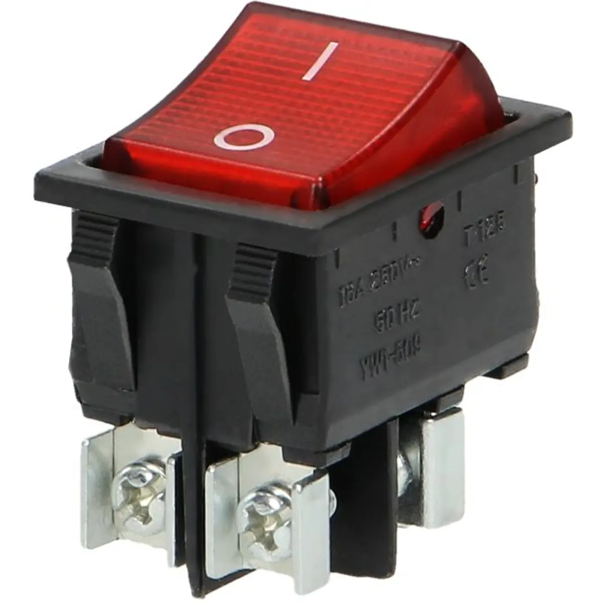 Interruptor basculante 2 posições estáveis - ON-OFF - 230VAC 16A (ligação parafuso) - luminoso vermelho