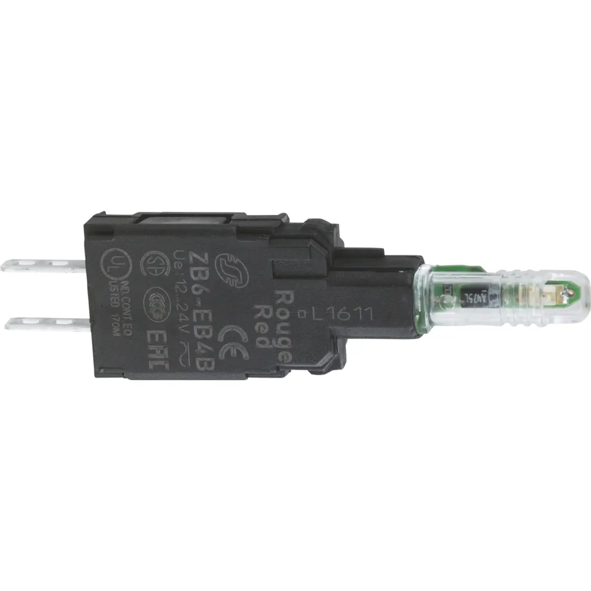 O ZB6EB3B é um bloco de luz com LED de cor verde, capaz de suportar tensões de alimentação de 12 a 24V AC ou DC.