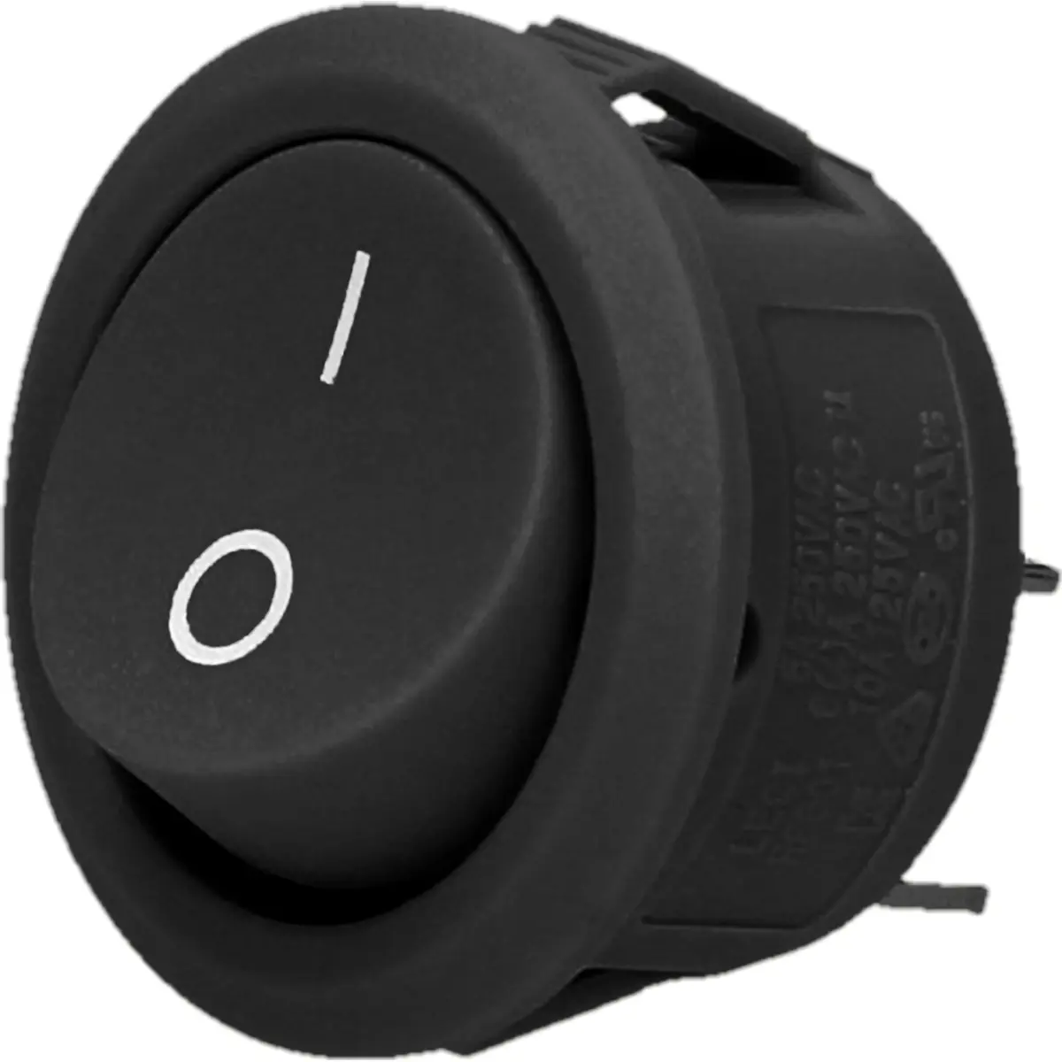 O interruptor basculante redondo é um comutador unipolar SPST com duas posições estáveis (ON-OFF). Pode comutar correntes até 6 A a 250 V AC e até 20 A a 12 V DC, tornando-o adequado para circuitos de potência em equipamentos industriais e domésticos. Possui resistência de contacto até 50 mΩ, terminais de 4.8x0.8mm e durabilidade eléctrica de cerca de 6.000 ciclos. É preto, funciona entre -20 °C e 85 °C e oferece fiabilidade em formato compacto para aplicações que exigem controlo simples e durável.
