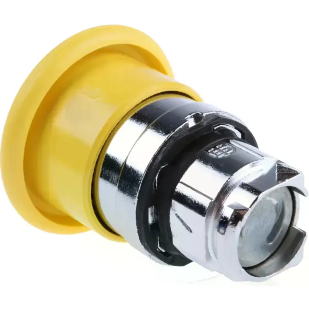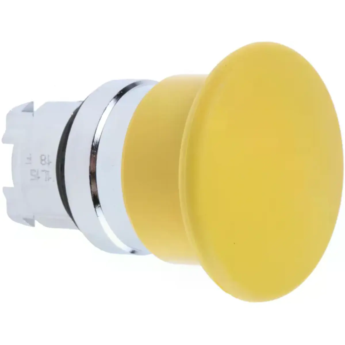 Cabeça de botão da série Harmony XB4, do tipo cogumelo amarelo de Ø40mm, com mecanismo de retorno por mola. Possui uma moldura metálica cromada, o que o torna ideal para aplicações que requerem uma elevada resistência ao impacto e às vibrações. Foi concebido para se adaptar a um recorte padrão de 22 mm, garantindo a compatibilidade aquando da instalação em máquinas pré-existentes. A sua vasta gama de temperaturas de funcionamento de -40°C a 70°C permite versatilidade na utilização do produto.