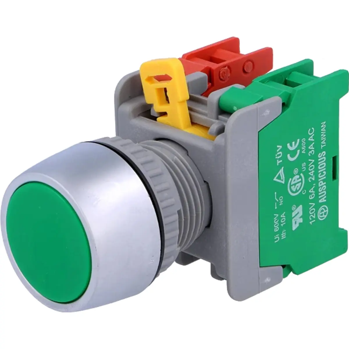 Auspicious PBF22-1O/C G - Botão de pressão monoestável verde1 posição estável NC+NO Ø22mm