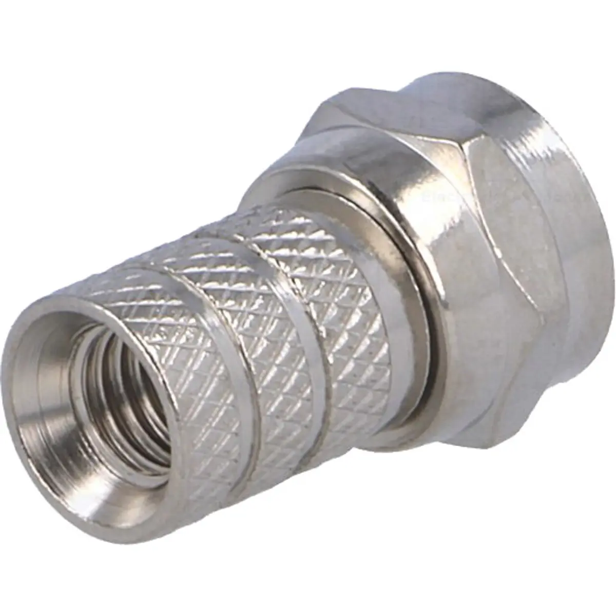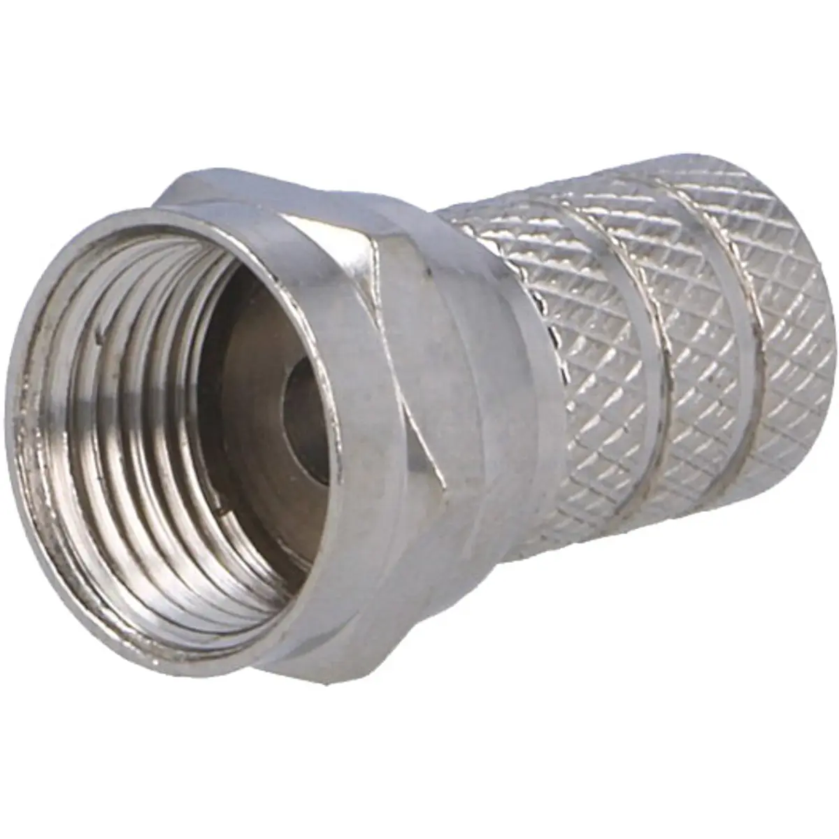 Conector F macho com fixação twist-on, fabricado em cobre níquelado, para cabos coaxiais com diâmetro de revestimento de aproximadamente 5 mm e dielétrico até 3,1 mm. Possui 20 mm de comprimento, oferecendo uma ligação rápida, segura e durável em instalações de RF e telecomunicações. Ideal para ligações entre componentes que exigem conectividade confiável sem necessidade de ferramentas; compatível com cabos de especificação semelhante.