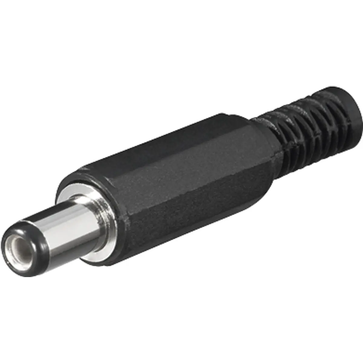 Conector DC fêmea com diâmetro externo de 5.5 mm, diâmetro interno de 2.1 mm e comprimento de 9.5 mm. Descreve dimensões essenciais para encaixe entre cabos e dispositivos elétricos, assegurando compatibilidade com conectores DC padrão e oferecendo uma interface física estável para ligações de alimentação.