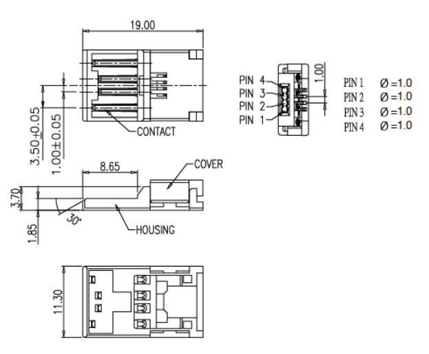 - Diâmetro máx externo cabo: Ø6,0 mm