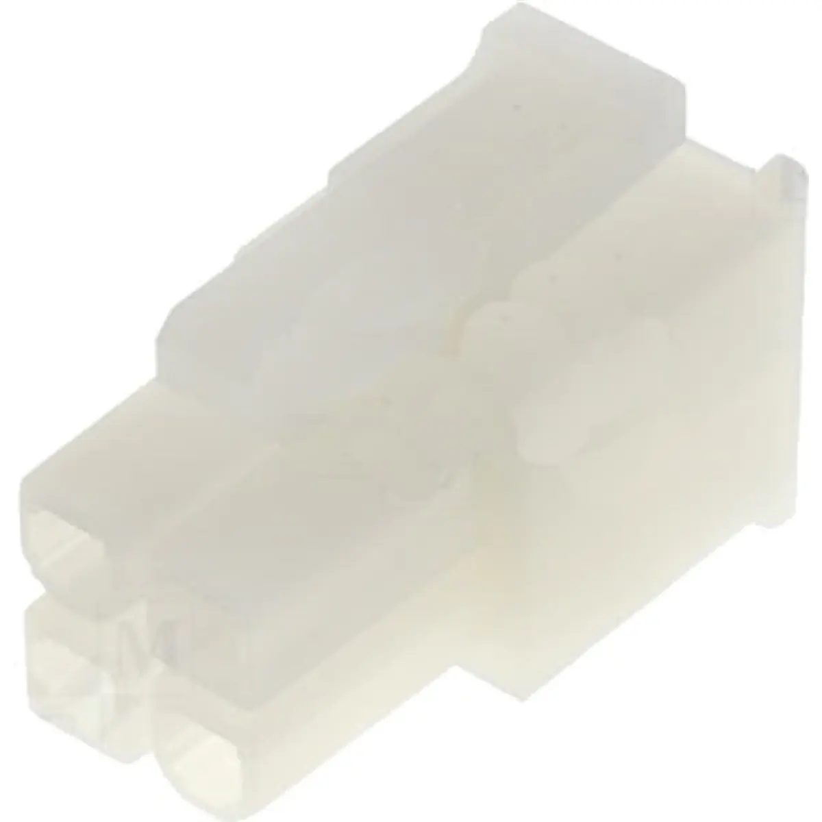 Conector fêmea da série Mini-Fit Jr. com 4 pinos, passo 4,2 mm, para ligações fio-a-fio e placa. Versão sem contactos, montagem com cabo, tensão nominal de 600 V e faixa de temperatura de -40 °C a 105 °C. Classificação UL94V-2 e sistema de bloqueio por trinco, ideal para cablagem segura em painéis e equipamentos elétricos, oferecendo fiabilidade, isolamento e compatibilidade com ligações de alta tensão.