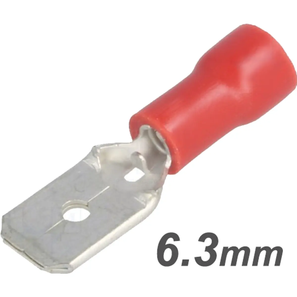 Terminal Faston macho isolado vermelho (0.5-1.0mm²) 6.3mm