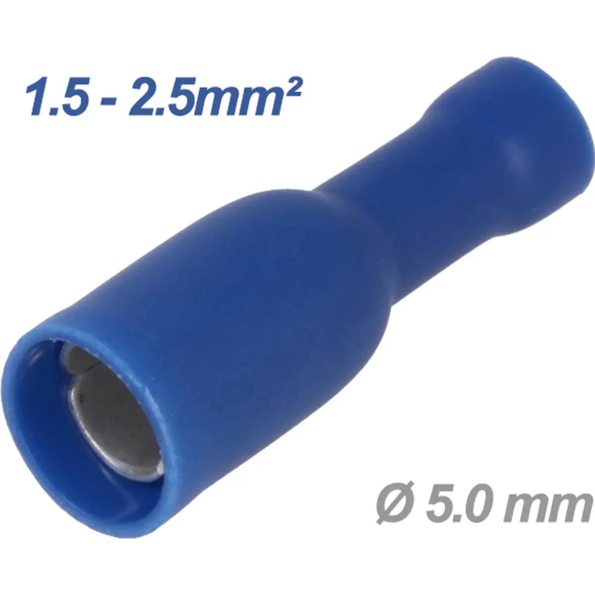 Terminal redondo fêmea isolado azul (1.5-2.5mm²) Ø5.0mm
