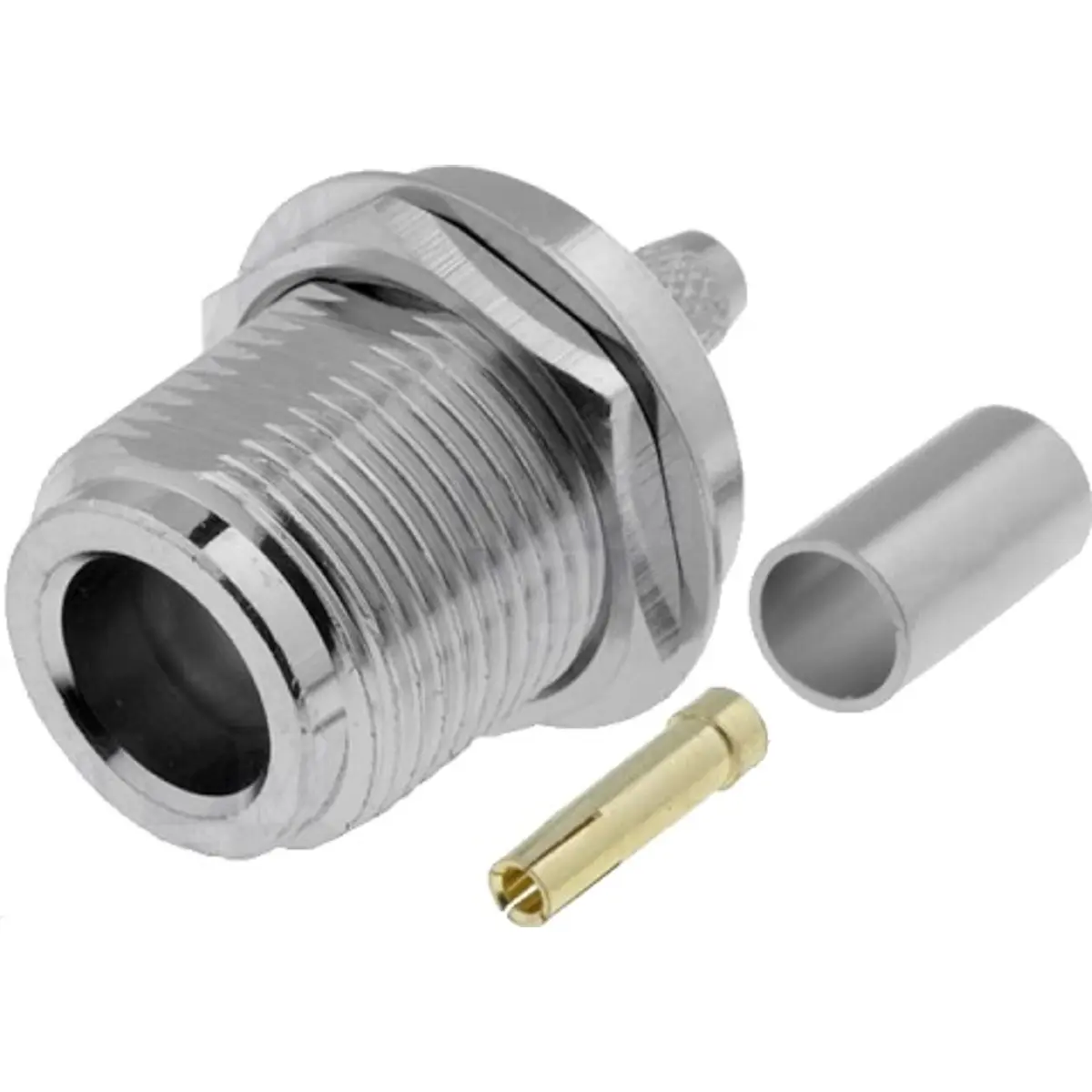 Ficha N de cravar fêmea de painel com porca para cabo RG58 Ø5mm