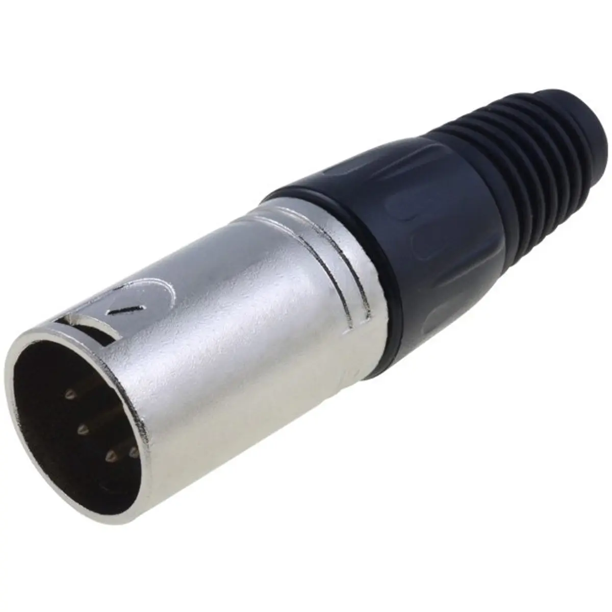 Conector XLR macho de 5 pinos para cabo, destinado a cablagem de áudio profissional. Compatível com cabos XLR para ligações seguras, com montagem para cabo. Permite soldagem simples e montagem rápida em ligações de áudio, microfones e equipamentos de som. Proporciona ligação estável com contactos firmes e fixação segura. Ideal para montagem de cabos personalizados em estúdios, palcos e sistemas de som.
