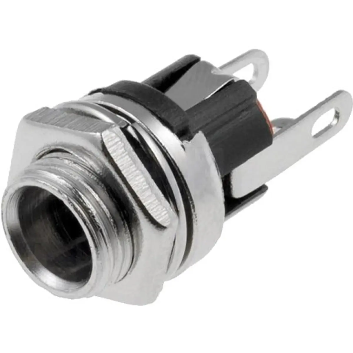 Conector DC de painel macho, com rosca e interruptor on/off, para montagem em painel. Possui diâmetros externo 5,5 mm e interno 2,5 mm e comprimento de 9 mm, oferecendo fixação estável e conectividade prática. Peso de 3 g, ideal para aplicações elétricas que exigem montagem segura, comutação integrada para ligar/desligar a corrente. Compatível com painéis, robusto e compacto para utilização em dispositivos de baixa potência.