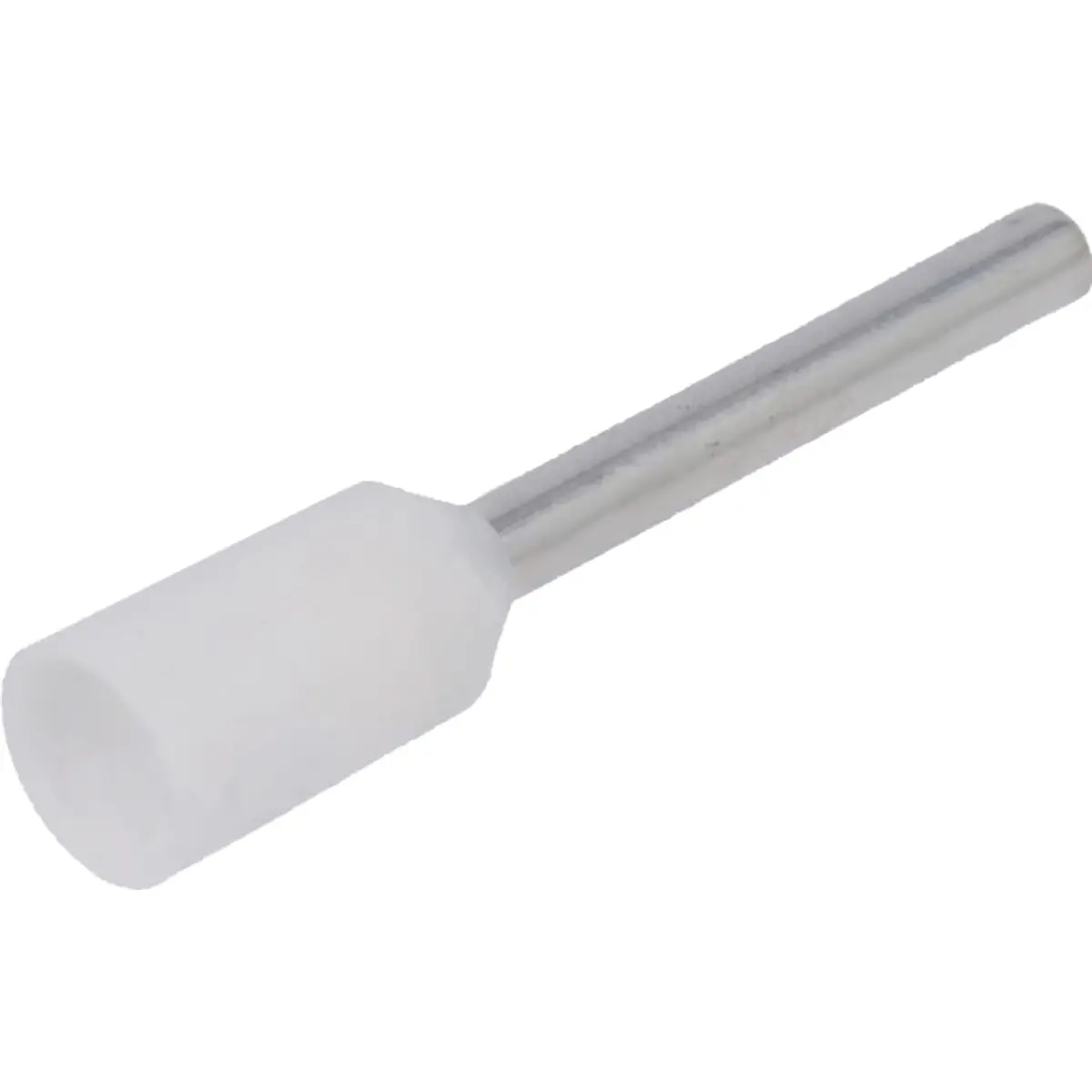 Ponteira isolada em cobre para fio de 0.5mm2, com isolamento em poliamida, comprimento de 10 mm e acabamento branco. Proporciona uma ligação segura em cablagens elétricas, protegendo o condutor e evitando curtos-circuitos. Ideal para ligações de precisão em montagens elétricas e eletrónicas, com durabilidade e isolamento confiável.