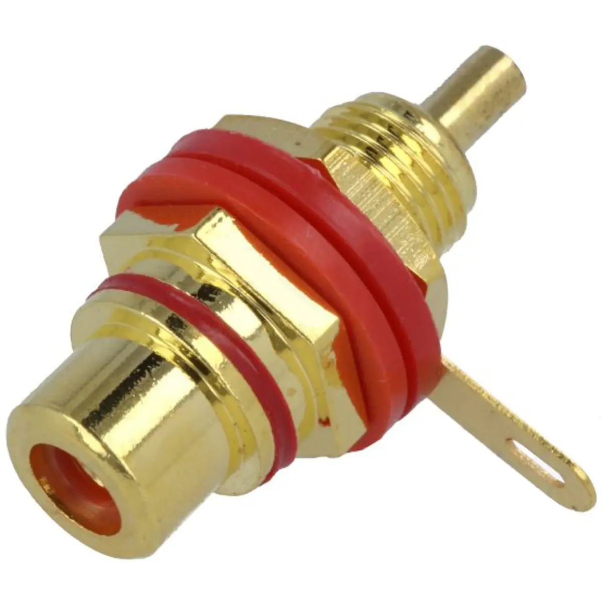 Ficha RCA fêmea dourada vermelha para painel