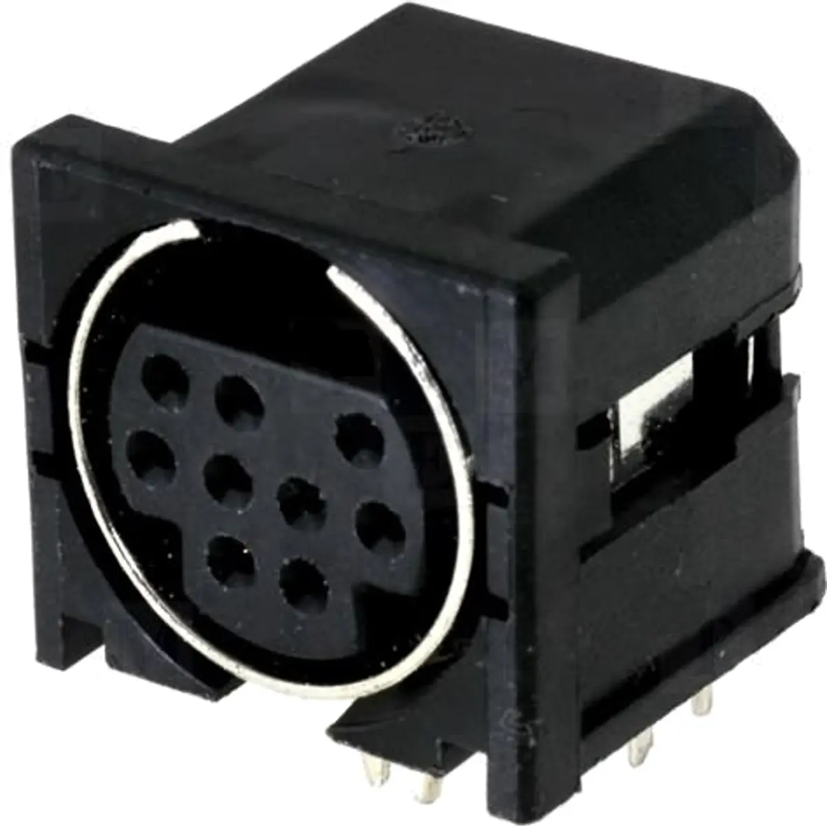 Ficha mini-DIN 9 pinos fêmea para soldar em PCB 90º